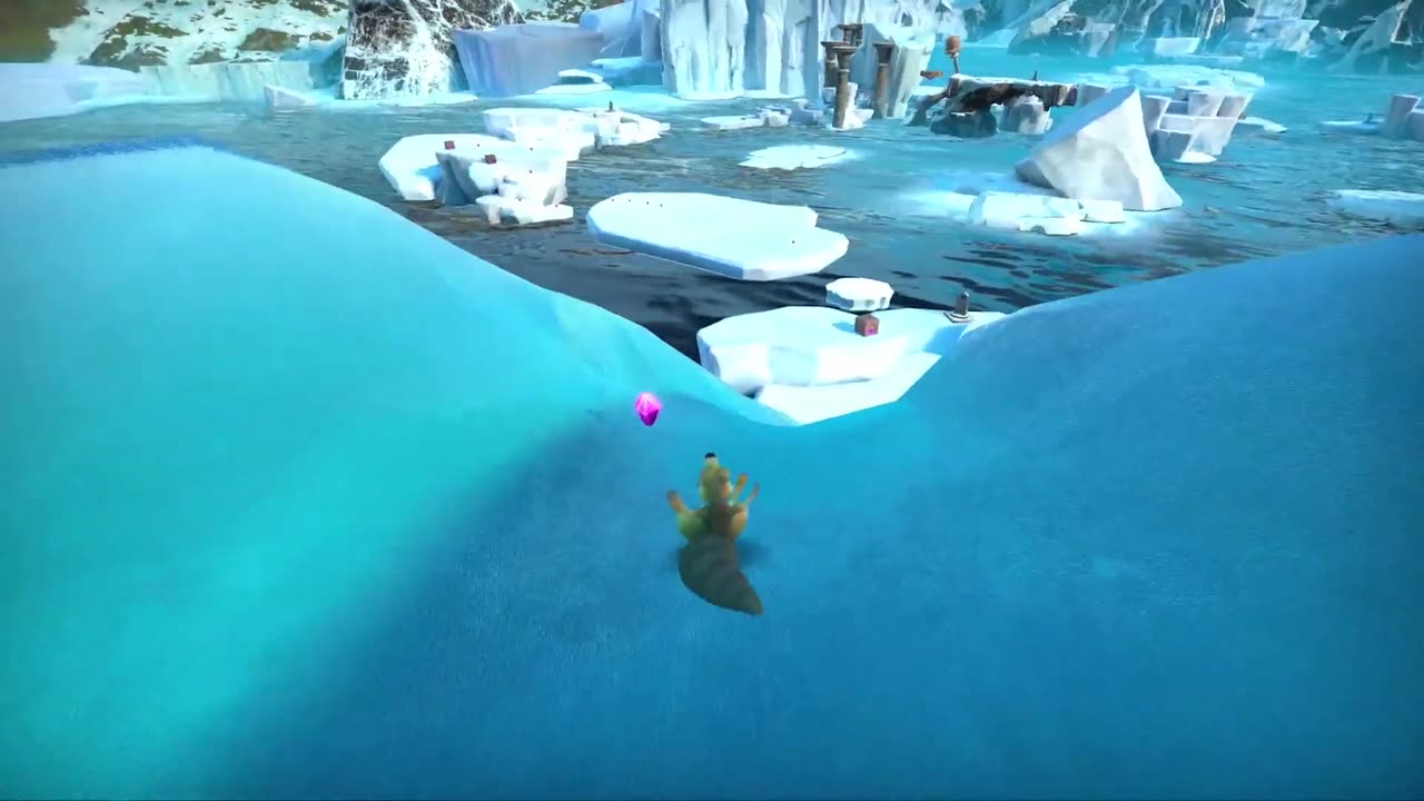 O gameplay é uma aventura em 3D que combina ação, platforming e elementos de exploração. O jogador guia Scrat por cenários que incluem geleiras, geysers em erupção, lava e estruturas altas, onde a mecânica de pulos e movimentos acrobáticos é central. Durante a exploração, são encontrados tesouros que desbloqueiam poderes especiais, como permitir saltos mais altos, levantar objetos pesados e acessar áreas antes inatingíveis. Os desafios incluem batalhas contra lobos, insetos perigosos e chefes gigantes, além de superar os imprevistos constantes da má sorte de Scrat, que muitas vezes complica a jornada. O jogo oferece uma experiência focada em exploração e combate, com locais reconhecíveis do universo *Ice Age* e mecânicas que reforçam a identidade humorística e física do personagem.