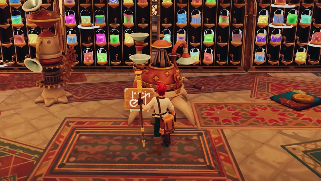 O jogo inclui interações com os Agari, uma civilização de criaturas fúngicas inteligentes que controlam a economia e operam máquinas críticas para otimizar a produção. Para obter o apoio dos Agari, o jogador deve demonstrar habilidades e cumprir objetivos específicos, ganhando sua confiança gradualmente. A exploração do mundo envolve a navegação por paisagens coloridas e mágicas, repletas de recursos exclusivos, plantas, fungos e minerais. Alguns materiais exigem misturas alquímicas específicas para serem coletados, e o jogador deve encontrar soluções para superar obstáculos e desbloquear novas áreas. O ambiente inclui montanhas alpinas exuberantes, com paisagens diversas que exigem diferentes estratégias para serem exploradas. A complexidade dos blueprints aumenta com o progresso, exigindo planejamento e experimentação para desenvolver substâncias cada vez mais avançadas.