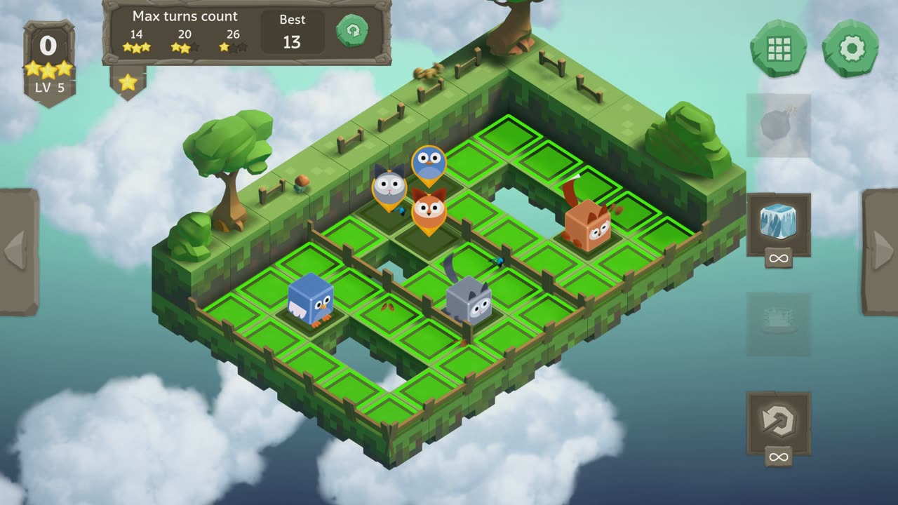 A jogabilidade foca em planejamento estratégico e criatividade, permitindo que você resolva cada desafio da maneira que preferir. Se ficar preso, há quatro ferramentas úteis à disposição, mas o maior prazer está em completar os níveis apenas com suas habilidades. Cada sucesso é recompensado com música relaxante e efeitos sonoros engraçados.