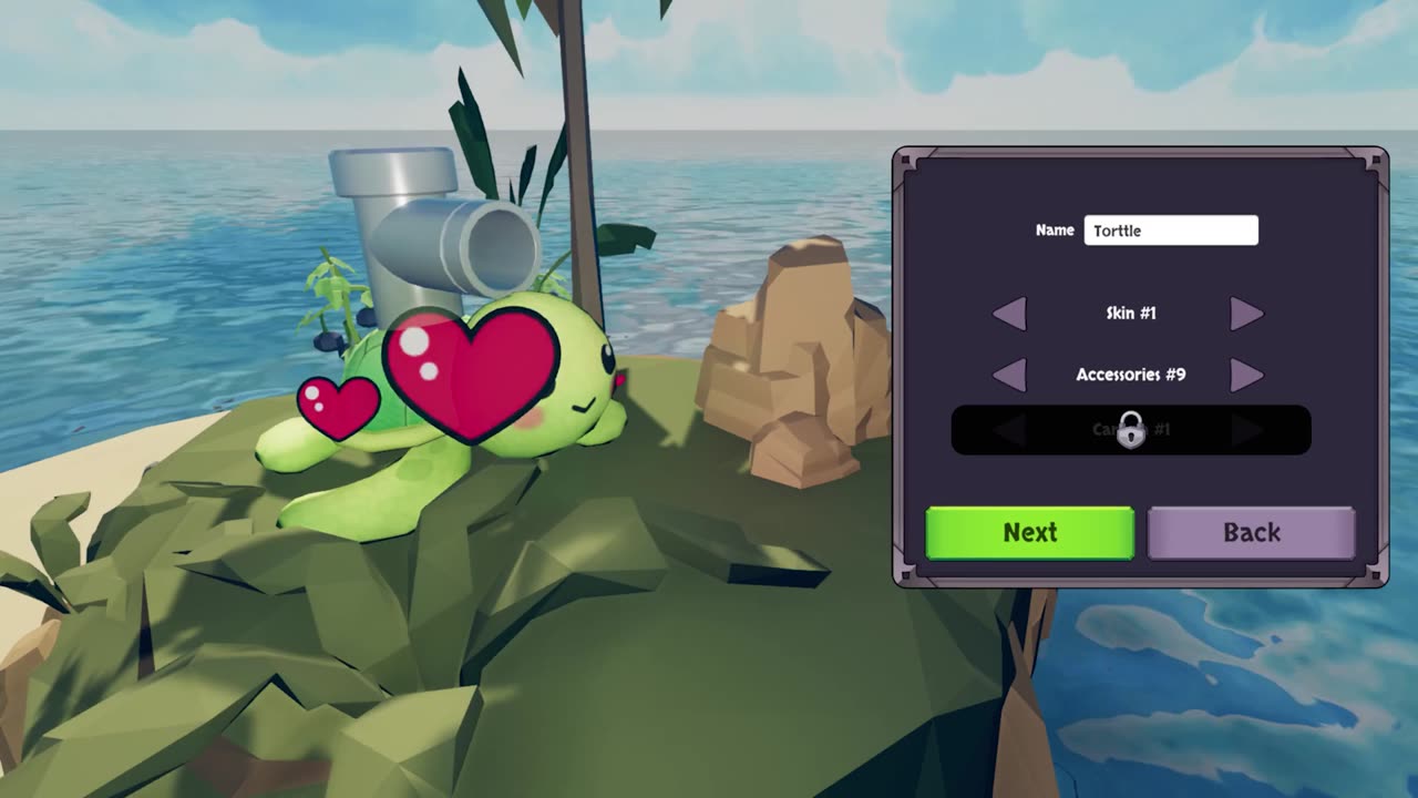 Cada fase apresenta biomas diferentes cheios de desafios inusitados. Você pode escolher entre várias opções para equipar sua tartaruga: um colete salva-vidas, um canhão ou até mesmo asas para se mover mais rapidamente na superfície. Os companheiros que você recruta, como golfinhos e unicórnios, fornecem habilidades únicas que tornam a jornada ainda mais diversificada.