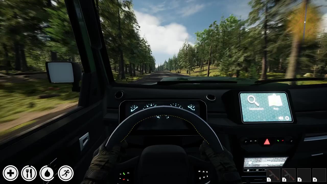 🗺️ Open World and Production: Drive your car on a massive map, hunt deer in the wild, cut trees, and gather minerals. Build your base, produce electricity, and loot resources.
