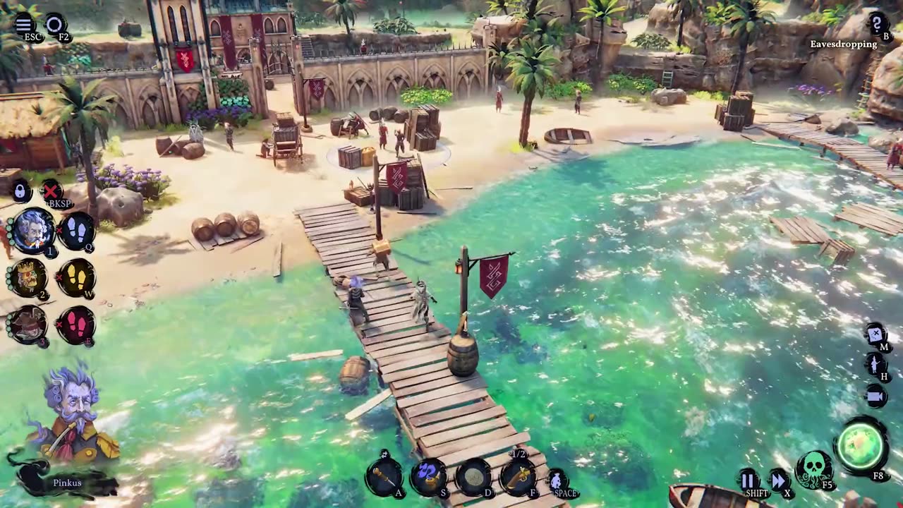 Cada membro da tripulação tem habilidades específicas, como a canhão mágico de Gaëlle para lançar aliados sobre obstáculos ou a posse de von Presswald sobre guardas inimigos, permitindo combinções criativas para desarmar defesas ou criar vantagens. Missões ocorrem em ilhas inteiras da Caribe Perdida, com liberdade para escolher a ordem de execução e pontos de desembarque, priorizando segurança ou agilidade. Inimigos variam em comportamento e fraquezas, exigindo adaptações em estratégias: de soldados comuns a arqueiros em posição elevada ou pares mágicos que precisam ser derrotados simultaneamente. O uso de ambiente, como sombras, cobertura e magia, é essencial para neutralizar adversários sem ser visto. A navegação entre ilhas é complementada por histórias pessoais dos tripulantes e missões secundárias, enquanto a narrativa não-linear permite revelar novos membros e ilhas conforme o progresso. A escolha entre missões mais fáceis ou desafiantes afeta a evolução das habilidades da equipe, abrindo novas possibilidades. A resistência à Inquisição depende de planejamento, criatividade e a unidade da tripulação, com o destino do mundo e dos camaradas em risco.